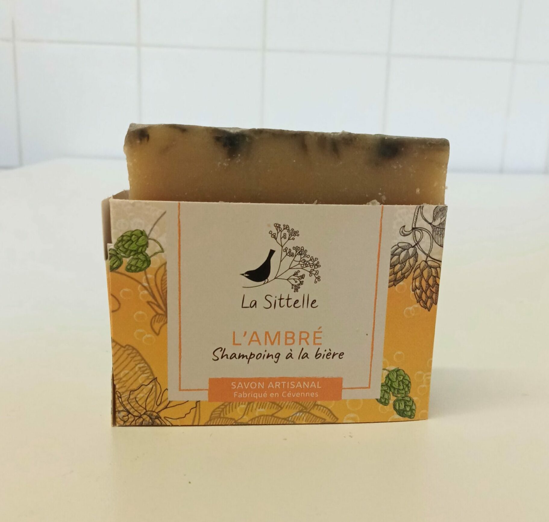 L’Ambré est un shampoing/savon bio enrichi à la bière (locale évidemment!) et à l’huile de ricin,  délicatement parfumé avec une synergie d’huile essentielle d’ylang-ylang de petit grain bigarade et de géranium.